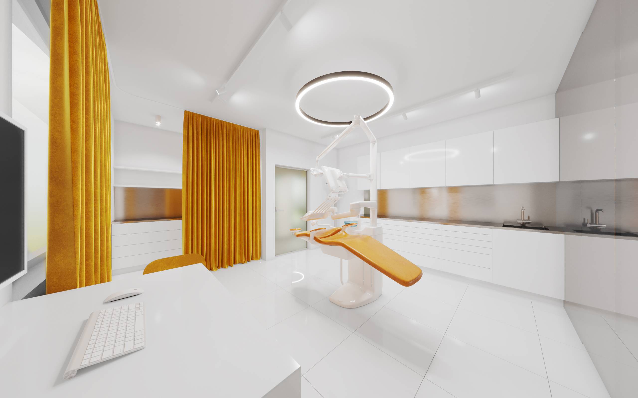 W strefach ogólnodostępnych nadrzędnym celem projektu było stworzenie jasnych, przestronnych i przytulnych wnętrz - interesujących i budzących pozytywne emocje przed stresującym zabiegiem. Wnętrza gabinetów natomiast, zaprojektowane zostały tak, aby podkreślać ich sterylność oraz panującą w klinice czystość i profesjonalizm. Cechy szczególnie ważne dla klientów w dobie panującej na świecie pandemii. Przyciągające wzrok pomieszczenie recepcji widoczne jest już z ulicy poprzez przestronną witrynę. Stanowi swoistą wizytówkę kliniki. Użyte materiały grają ze sobą różnymi fakturami i kolorami. Wnętrze budowane jest przez ich nieoczywiste zestawienia. Ciepłe, iglaste drewno sąsiaduje z surową blachą; lustra i gładkie okładziny zwieńczone są chropowatym sufitem z wełny drzewnej.Jasne i białe gabinety rozróżnione są natomiast poprzez użycie kolorów przewodnich, dopełniających detale. Szklane drzwi do gabinetów, pokryte mleczną, kolorową folią, pozwalają na penetrację wnętrz przez światło dzienne, przy jednoczesnym pozostawieniu gabinetów niewidocznymi z zewnątrz. Światło przepuszczane przez barwne szkło sprawia, że wnętrza pokrywane są zmieniającą się, delikatną poświatą kolorów.