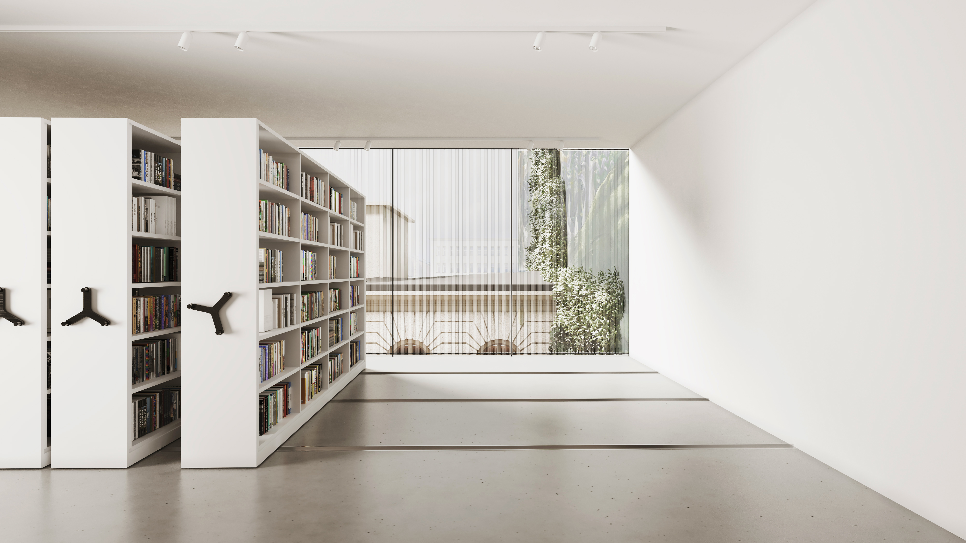 Aby zabytkowy budynek pozostał widoczny od strony dziedzińca, przestrzeń magazynowa zostanie wzniesiona na pierwszą i drugą kondygnację rozbudowy, uwalniając parter i odsłaniając część historyczną. W przeszklonym parterze zlokalizowano jedynie komunikację: windę oraz klatkę schodową. Elewacja kondygnacji magazynowych, w której odbija się okoliczna zieleń, zaprojektowana została w postaci dwóch pasów pionowych żyletek, wykończonych blachą. Szczególnie oglądane w skrócie perspektywicznym, zielone odbicia tworzą na rytmie elewacyjnym abstrakcyjne wzory. Sama forma budynku, o prostej artykulacji elewacji ma nie stanowić konkurencji dla eklektycznej, gęstej zabudowy dziedzińca Muzeum - a poprzez kontrastowe zestawienie i wytworzenie napięć, wręcz ją podkreślać i wydobywać na pierwszy plan. Ponad kondygnacjami magazynowymi znajduje się wycofana, całkowicie przeszklona, kondygnacja biurowa - niknąca na tle nieba. Ustawiona pod skosem ściana kondygnacji - w przeciwieństwie do kondygnacji niższych, prostopadłych do budynku H - nawiązuje do kierunku ustawienia południowych ścian sąsiednich oficyn, korespondując z pierwotnym podziałem ewidencyjnym działek. Rytm elewacji - od najgęstszego, przez rzadszy, po pozbawioną żyletek ostatnią kondygnację - nieco „odciąża” wizualnie projektowany budynek.