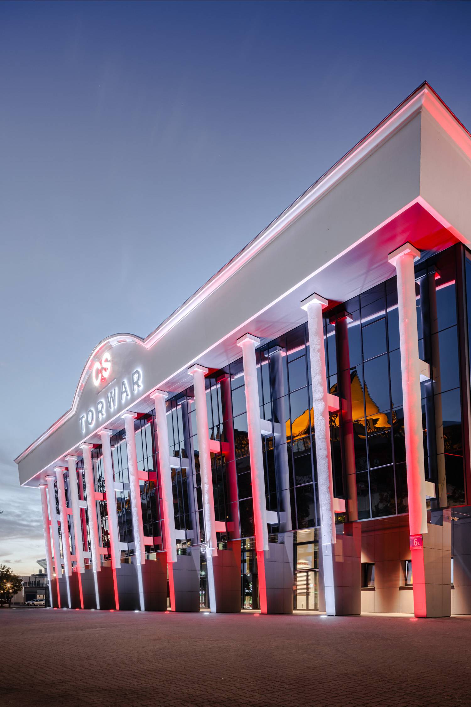Zakończyliśmy projekt remontu hali widowiskowo-sportowej Torwar I dla Centralnego Ośrodka Sportu. Przywróciliśmy zabytkowemu budynkowi pierwotną kolorystykę oraz przez iluminację wydobyliśmy historyczną artykulację elewacji. Poprzednią identyfikację wizualną zamieniliśmy na neony. Prace zakończyły się w sierpniu 2025 roku.